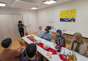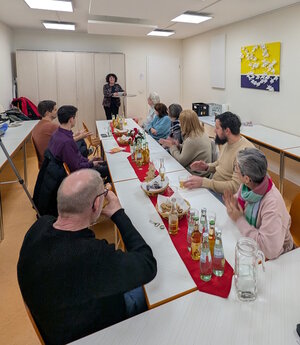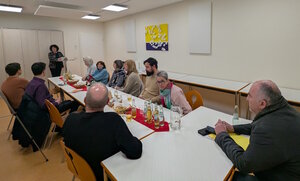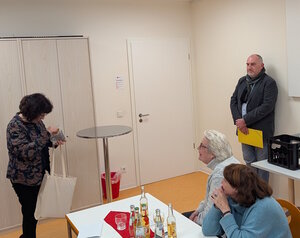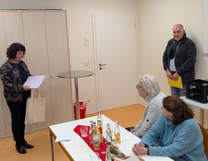 „Der DBSH Saar sagt Danke !!!“ - mit diesem Satz begrüßte die Vorsitzende des "Deutschen Berufsverband für Soziale Arbeit" (DBSH) - Landesverband Saarland -, Dr. Claudia Wiotte-Franz, die anwesenden Besucher_innen. Irene Portugall, die gemeinsam mit ihrer Frau Dagmar Götzmann anwesend war, erhielt die Anerkennung für ihr jahrzehntelanges Wirken. Vertreten an diesem Abend waren unter anderem der "Lesben- und Schwulenverbandes Saar" (LSVD) mit Robert Hecklau, Julia Zimmermann und Marco Wirbel, die SPD mit Julia Zimmermann, die "Saarländische Armutskonferenz" (SAK) mit Christoph Jakob, die "Vereinigung der Profession Soziale Arbeit" (VPSA) mit Marco Wirbel und Michael Leinenbach, die "Volkshochschule der Stadt Saarlouis" (vhs) mit Andreas Obster, der SR Kultur mit der Kirmiautorin Eva Bense, vom DBSH Landesverband Saar Georg Hoffmann, Swen Sesterhenn, Gaby Böhme, Christa Altmeier-Kuß und Michael Leinenbach.