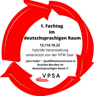 Die „Vereinigung der Profession Soziale Arbeit e.V.“ (VPSA) führt gemeinsam mit der „Hochschule für Technik und Wirtschaft Saar“ (htw saar) - Fakultät für Sozialwissenschaften -, ANCES (Luxemburgischer Fachverband für Soziale Arbeit und Erziehung) und weiteren Partnern, den 1. Fachtag zum Thema „Quo Vadis“ – Qualifikationsniveaus in Sozialen Berufen im deutschsprachigen Raum?!“ durch. Der hybride Fachtag findet am 13. und 14. Oktober 2022 für alle Teilnehmer*innen digital statt. Im Zentrum des Fachtages stehen die Qualifikationen und Kompetenzen in den Berufen der Erziehung / Pädagogik der Kindheit/ der Sozial- und Erziehungswissenschaften, im Kontext des EQR (Europäischen Qualifikationsrahmen). Entsprechend des Anspruches einer Orientierung auf die Profession wird den Teilnehmenden in Workshops die Möglichkeit gegeben, sich über unterschiedliche soziale Berufe in der Großregion zu informieren bzw. sich über die unterschiedlichen Ausbildungen der Sozialen Berufe in der Großregion zu informieren. Die jeweiligen Workshops sind an Handlungsfeldern mit starkem Praxisbezug orientiert. Die Anmeldung zum Fachtag ist seit Anfang September 2022 bis eine Woche vor Beginn des Fachtag online möglich.